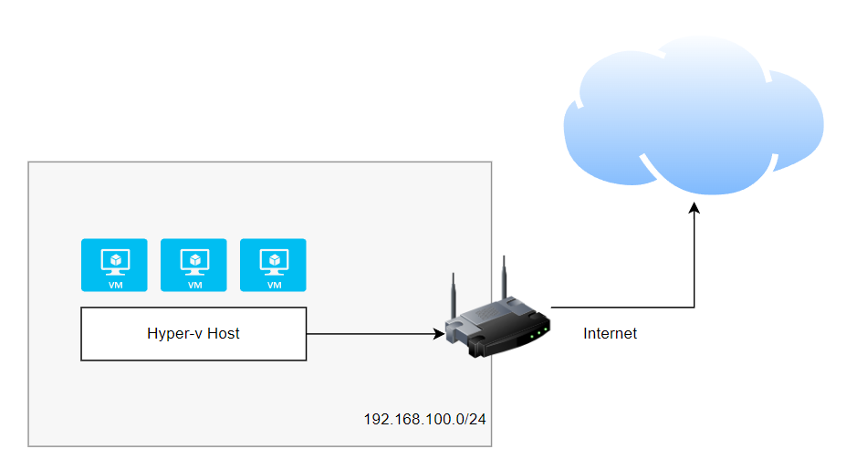 - Membuat switch External. Switch external disini berfungsi untuk vm agar dapat mengakses internet local. Jadi disini interface network dari VM akan terkoneksi langsung dengan physical interface dari hyper-v host atau komputer tempat menjalankan. Jadi nantinya, vm akan mendapat IP dari DHCP router