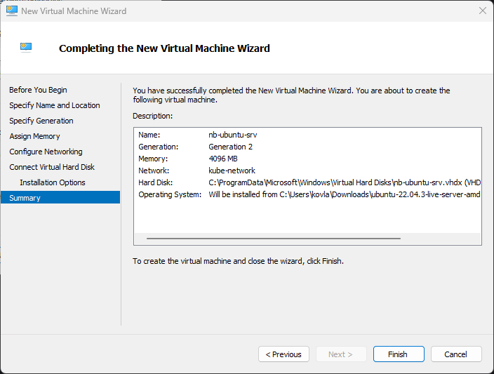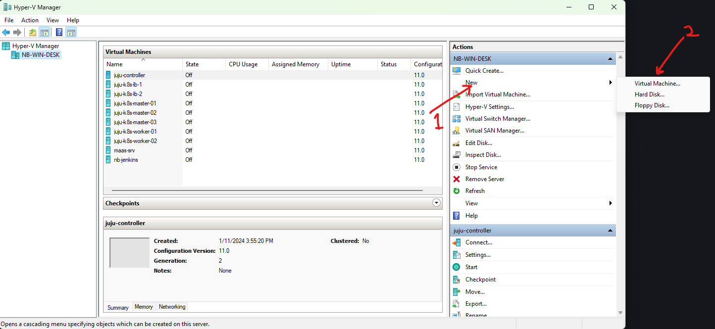 Hyper-v akan membuat disk, dan VM dalam kondisi Off.