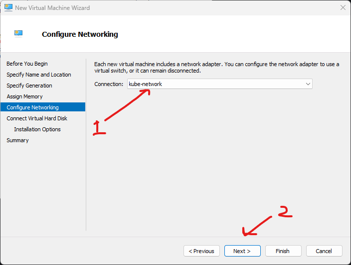 - Di menu Configure Networking, disini pilih connection dengan switch yang tadi dibuat. Jika sudah klik next