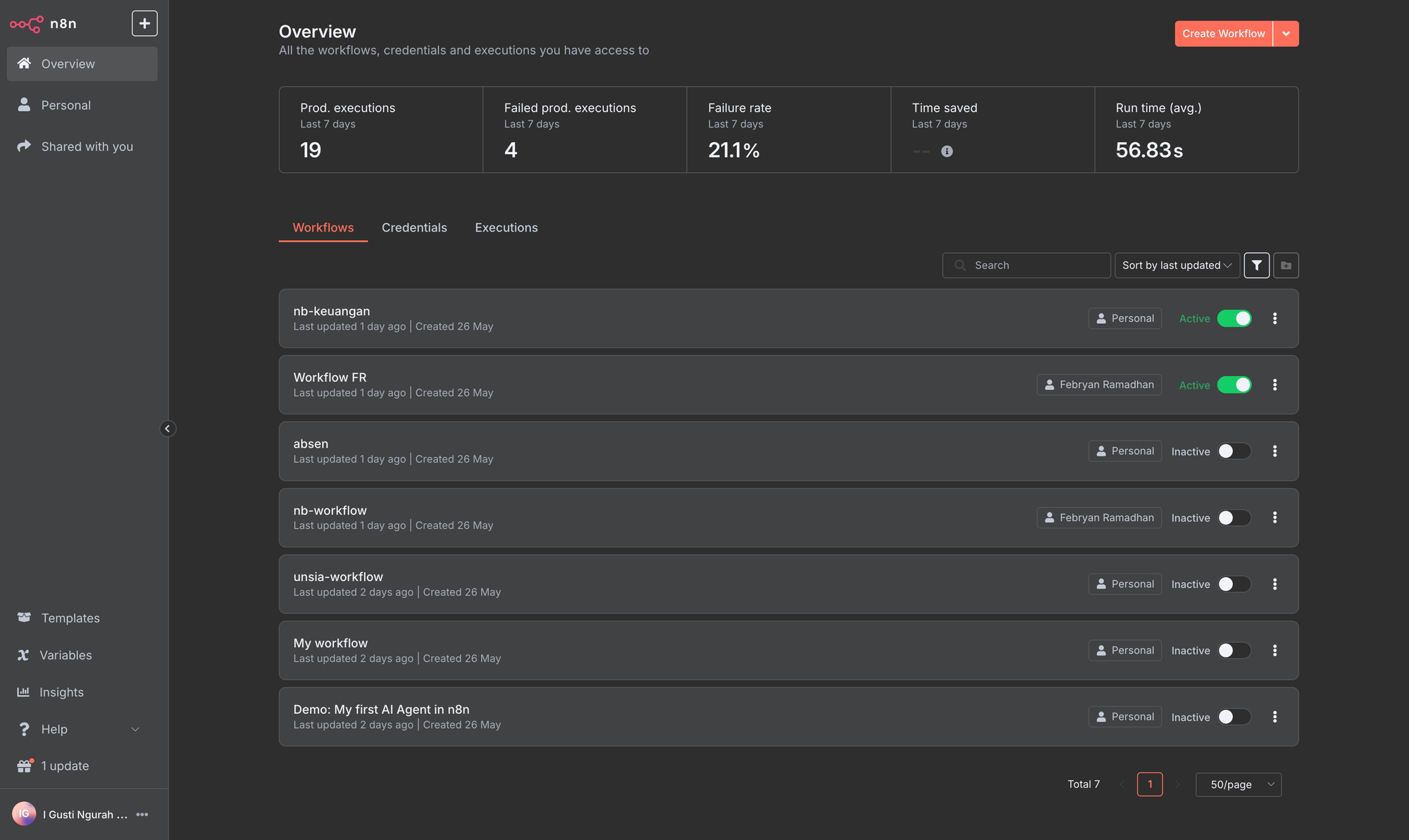 n8n adalah alat otomatisasi alur kerja (workflow automation) yang kuat dan fleksibel. Ini memungkinkan untuk menghubungkan berbagai aplikasi dan service, otomasi tugas, dan membangun alur kerja yang kompleks tanpa perlu menulis kode. Dengan n8n, Anda dapat membuat integrasi kustom, memproses data, dan mengotomatiskan hampir semua hal yang dapat Anda bayangkan.